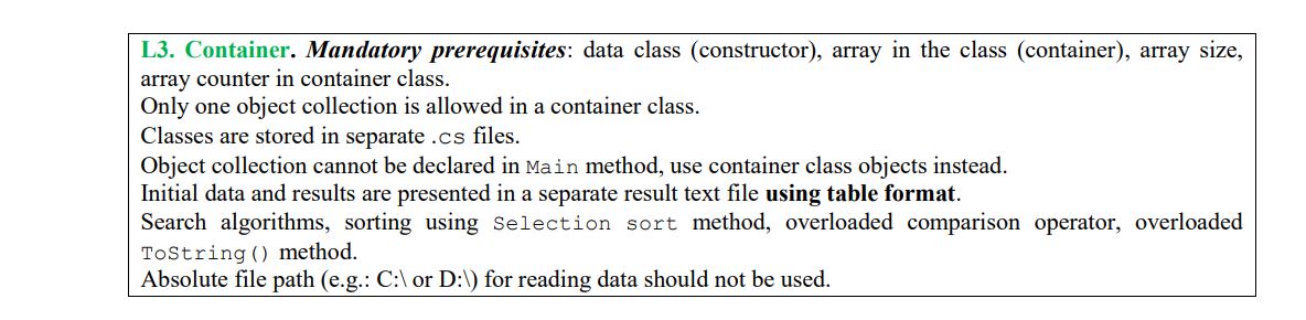 вариант 1: реализуешь самостоятельно сортировки, выборки из исходного массива выбирая интересующие контейнеры по заданию. Самый предпочтительный вариант в учебных целях.