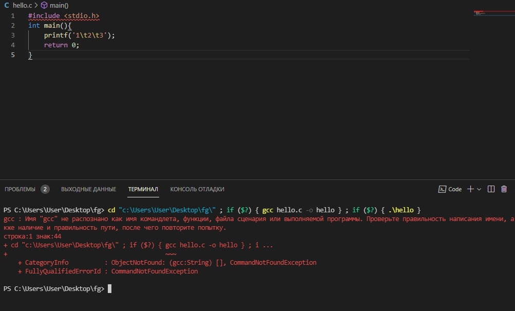 По вопросу - в PS нет алиасов на gcc, и в $env:PATH нет папки с комрилятором
