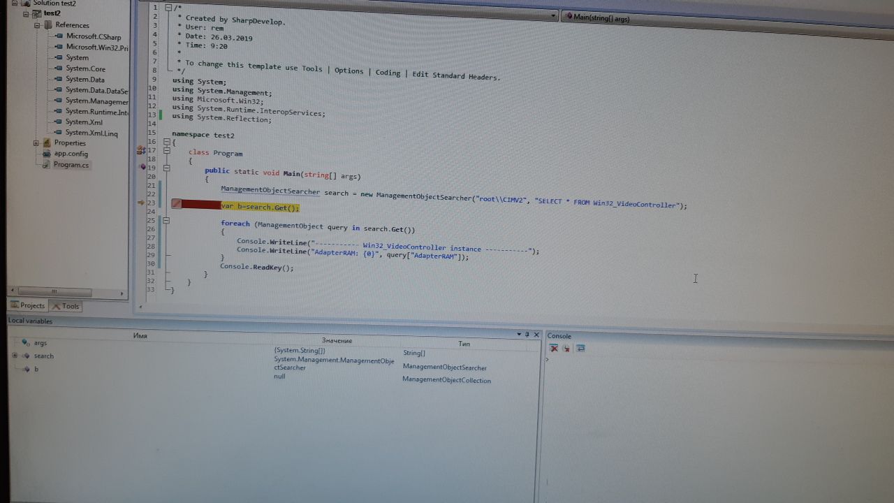 Ставлю точку останова на var b=search.get();