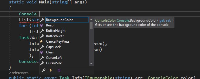 если тебя итересуют функции, то IntelliSense один из лучших в визуал студии. Ставишь точку после объекта и всё видишь