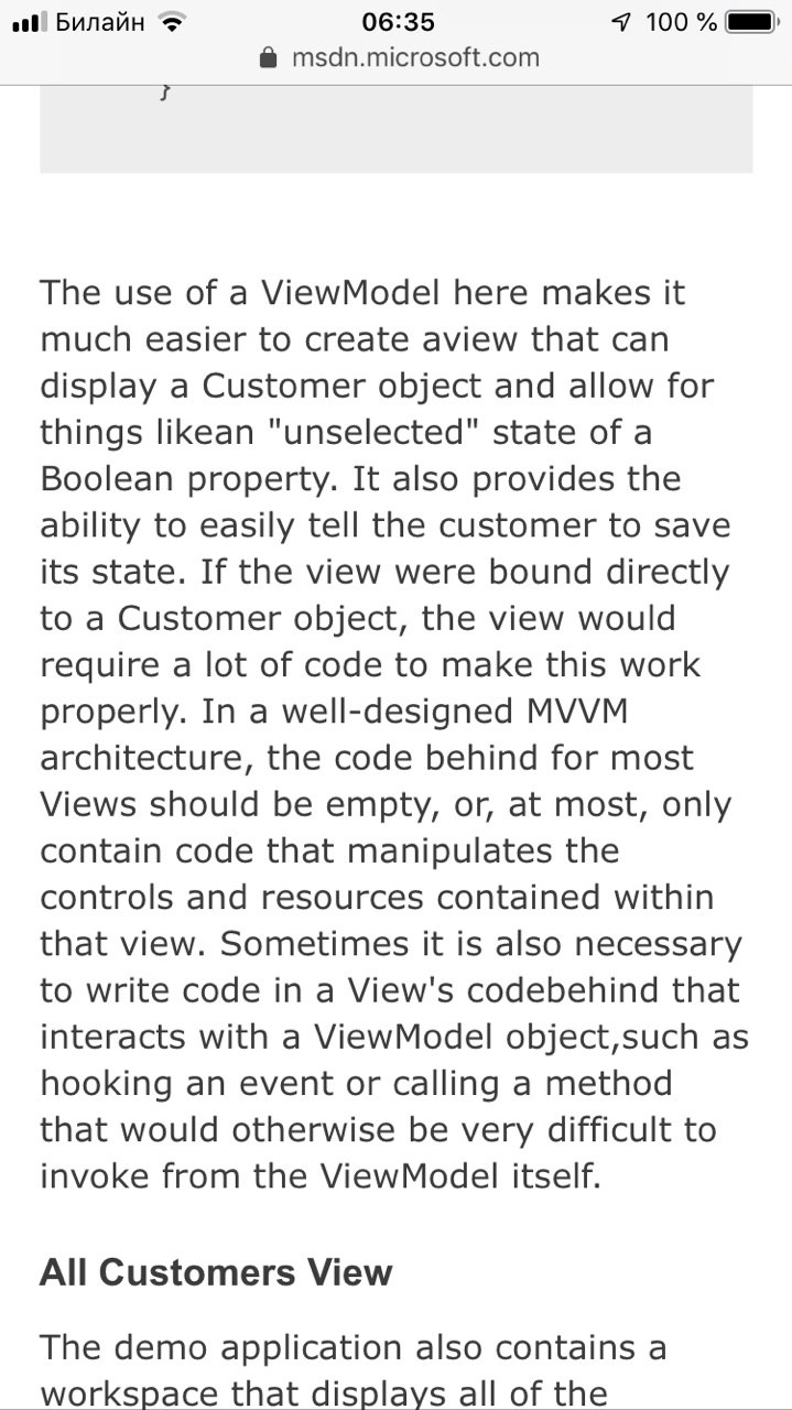 Хорошее видео про паттерны и слепое следование им )) Ну это так, не про mvvm конечно, но может быть полезным для общего развития.