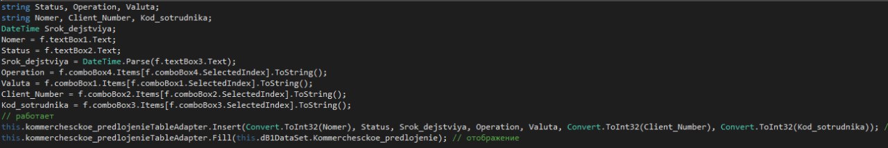 Коммерческое предложение это таблица в Базе Данных