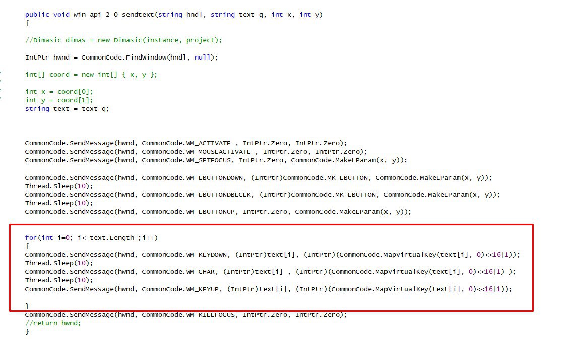 вот в форе я перебираю слово и по буквам его кидаю в окно)