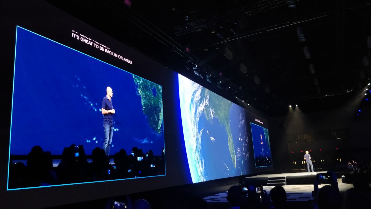Кейноут начался, Сатья на сцене рассказывает о Tech intensity