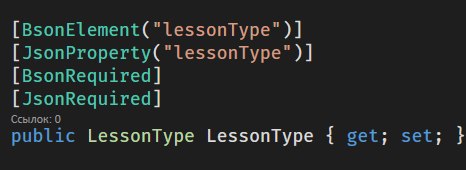 Как сделать, чтобы значение LessonType в модели возможно было задавать только по enum'у (вторая картинка)