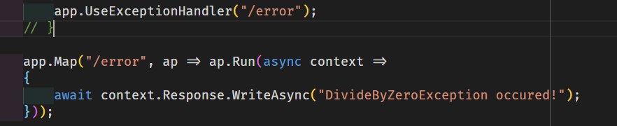 Почему я вроде настроил UseStatusCodePagesWithReExecute и UseExceptionHandler, однако, всё равно получаю такой ответ (см. картинку), если исключение я выбрасываю с помощью throw?