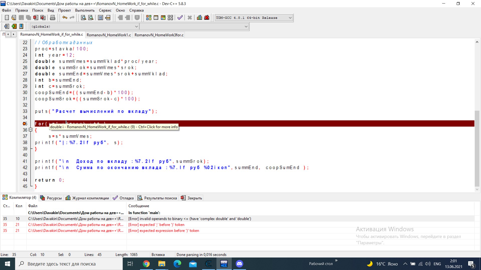 printf("Сумма вклада (руб)->"); scanf("%lf",&summVklad);