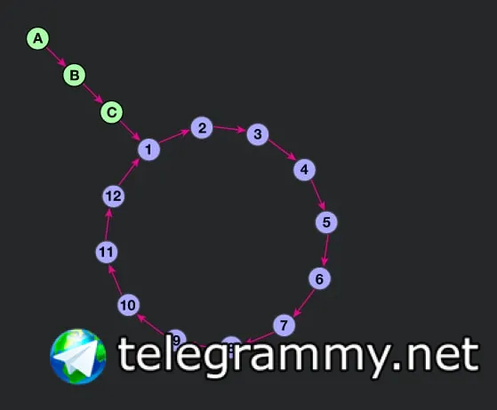 тут такая задача, дан связанный список, у него есть хвост(зеленый) и петля , первый узел начинается с хвоста. Задача: посчитать кол-во узлов в петли.