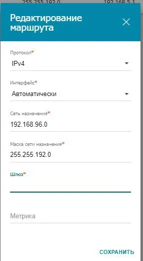 создать на 92ю0.22, потом попробовать добавить в разделе маршрутицации еще правило дл 96.0.22