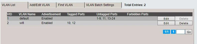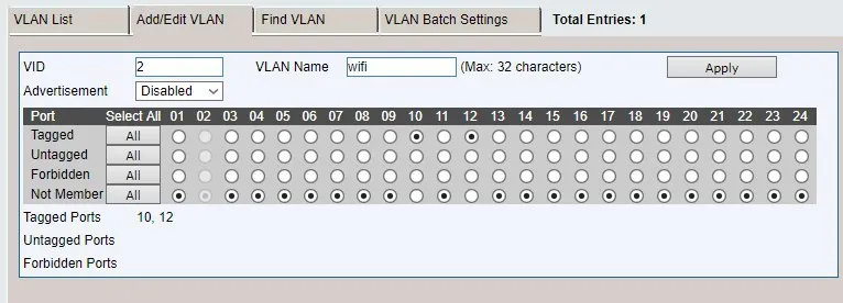 влан wifi в сторону второго коммутатора tagged