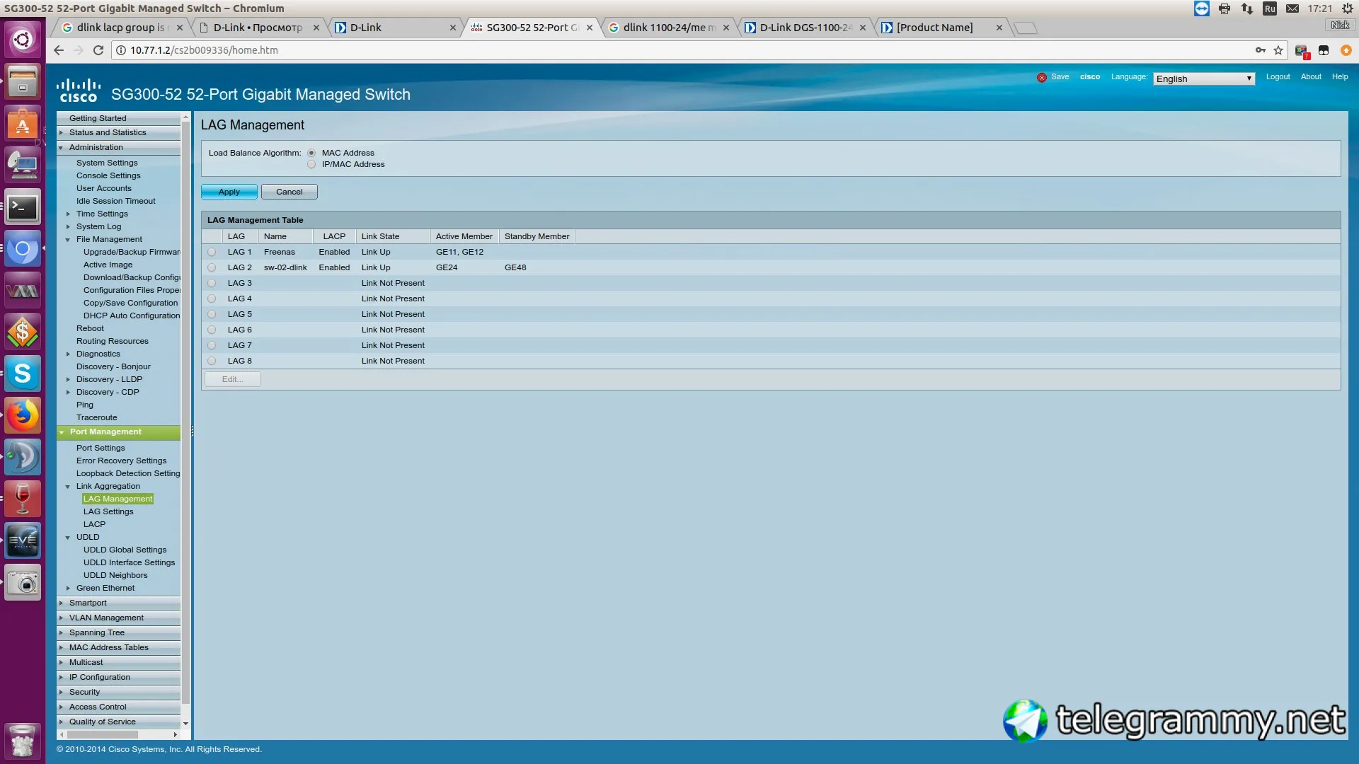 Итак в продолжении попытки сделать линк агрегейшн Cisco sg300 и Dlink 1100-24/me
