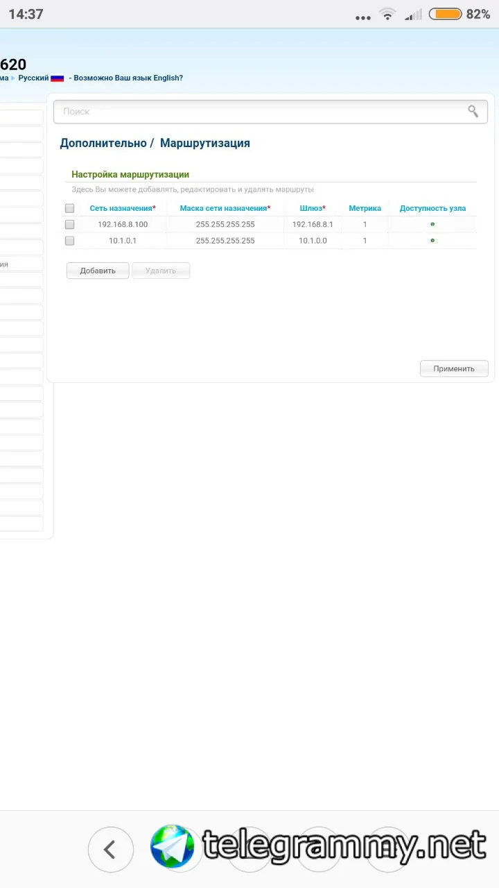 при добавлении маршрута есть выбор интерфейса?