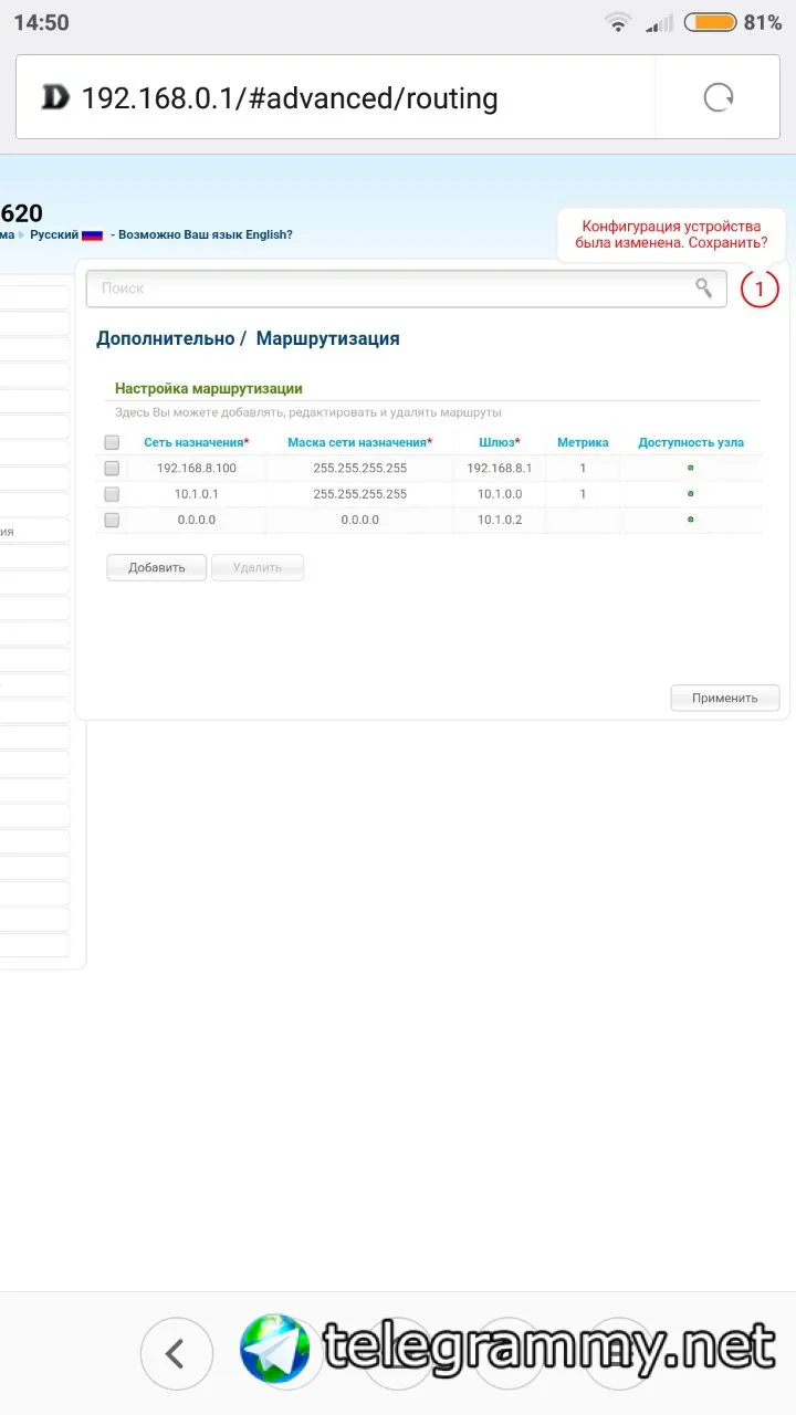 ну а теперь надо добавлять маршруты до тех сетей, которые нужно запустить через впн