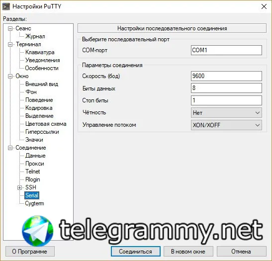 в путти внизу во вкладке сериал параметры выбираются
