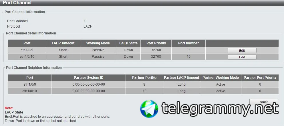 При конфигурировании LACP на обоих коммутаторах задается следующая информация: