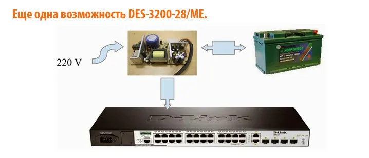 Целая серия комутов провайдерских гигабитных есть с любыми вариантами питалова. В стоке основное питание (переменка 220 или помтоянка 36-72) плюс редудант 12в. Есть вариант блока питания 220 + гель акум 13.6. функционал зарядки акума, мониторинг источника питания и степени заряда батареи. Трапы по исчезновению и возврату основы и по достижению критического уровня разряда.
