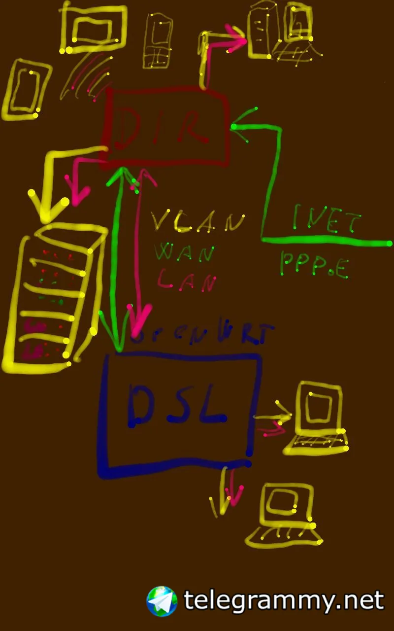 Порт дира сквозняком пропускает через себя шнур провайдера через влан