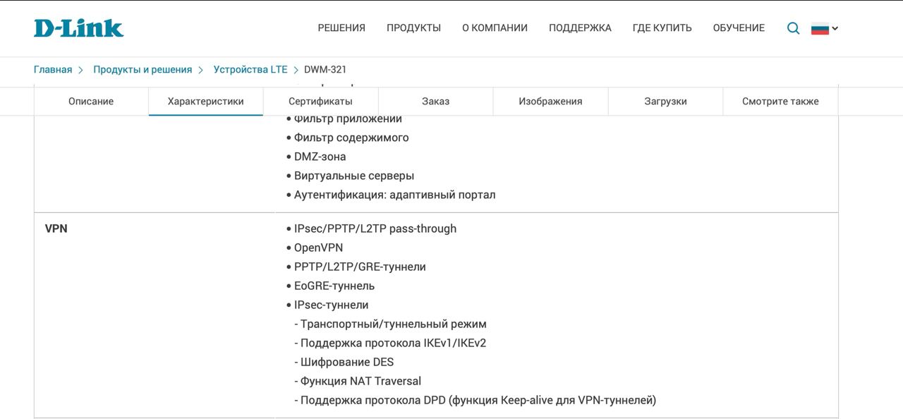 https://ftp.dlink.ru/pub/Router/DWM-321/Data_sh/DS_DWM-321_A1_RUS.pdf - указано , что прокол openvpn есть. Никаких других оговорок нет.
