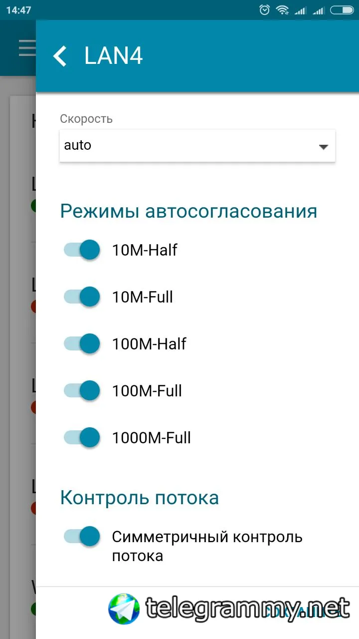 Это дополнительно, настройки портов, соответствующий порт, "симметричный контроль потоков".