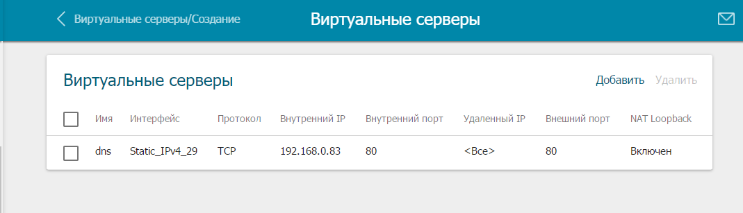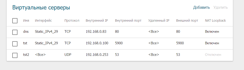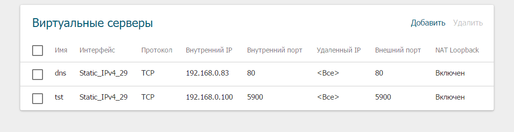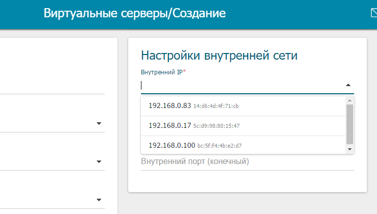 На вкладке Межсетевой экран -> Виртуальные сервера - все еще не помешается внуренний IP