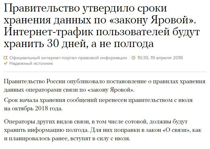 А вот и закон Яровой, давно не было.