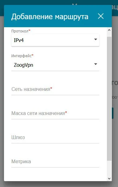 а потом при добавлении маршрута появится выбор интерфейса