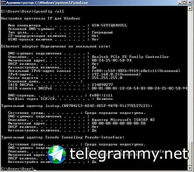 ipconfig /all с компа покажи