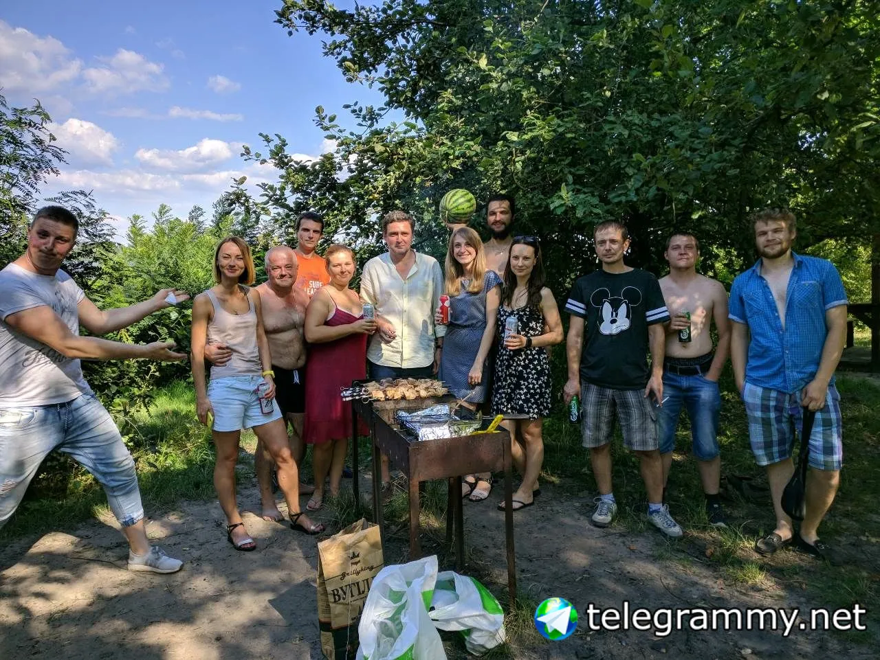 У нас намедни 13 лет фирме было, я арбуз притащил