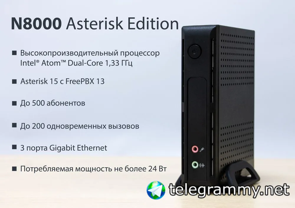 Аппаратно решение реализовано на базе терминального клиента N8000 с двухъядерным процессором Intel Atom 1,33 ГГц, 8 ГБ оперативной памяти DDR3L и 8 ГБ памяти eMMC. В качестве программного обеспечения используется открытая платформа для построения телефонных систем Asterisk 15 c FreePBX 13 под управлением Ubuntu 16.04.