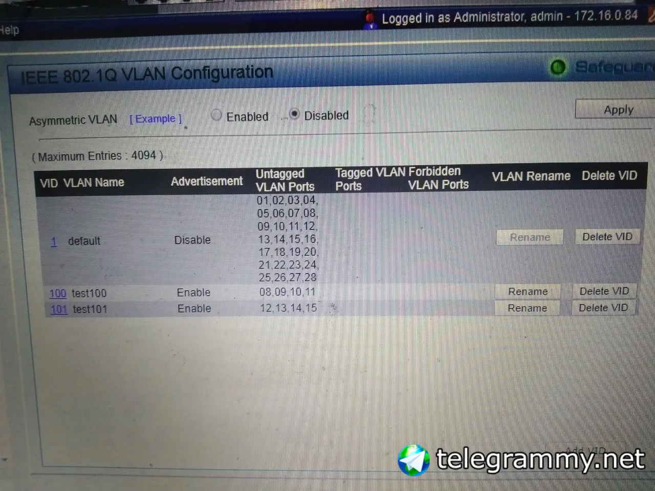 Как влан покинуть на dga1210 me
