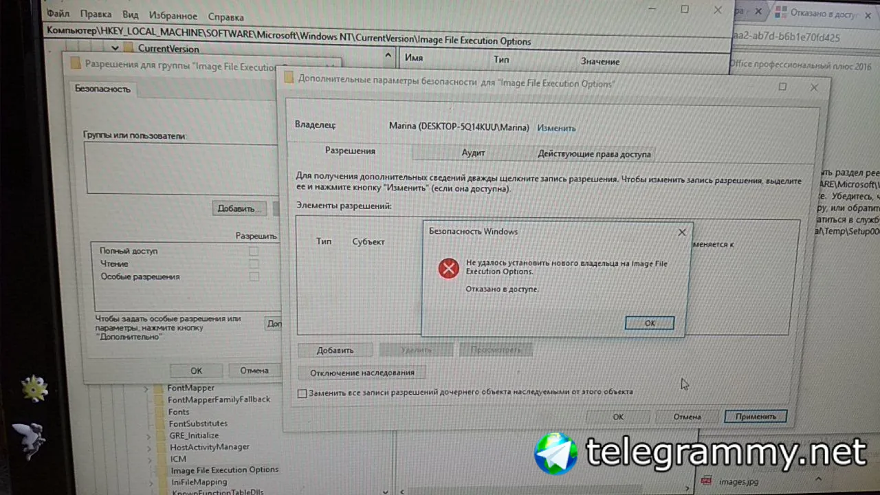 Нельзя просмотреть или изменить ветку реестра. Пробовал от админа, системы, трастед инсталлер. Нет доступа и все.