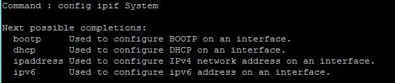 config ipif System vlan managment ipaddress х.х.х.х state enable
