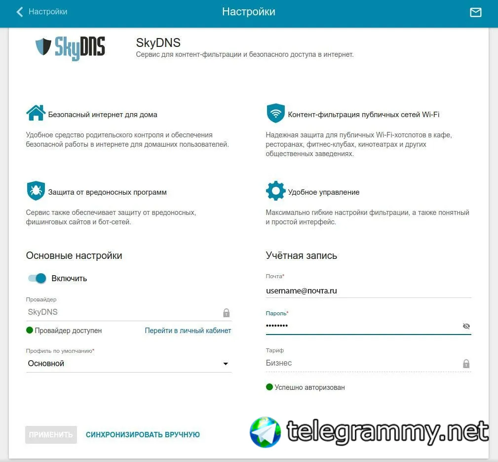 @cergo666, тут пришла рассылка длинк по поводу SkyDNS. я вот немного не понял, а для чего нужен ввод учетной записи там?