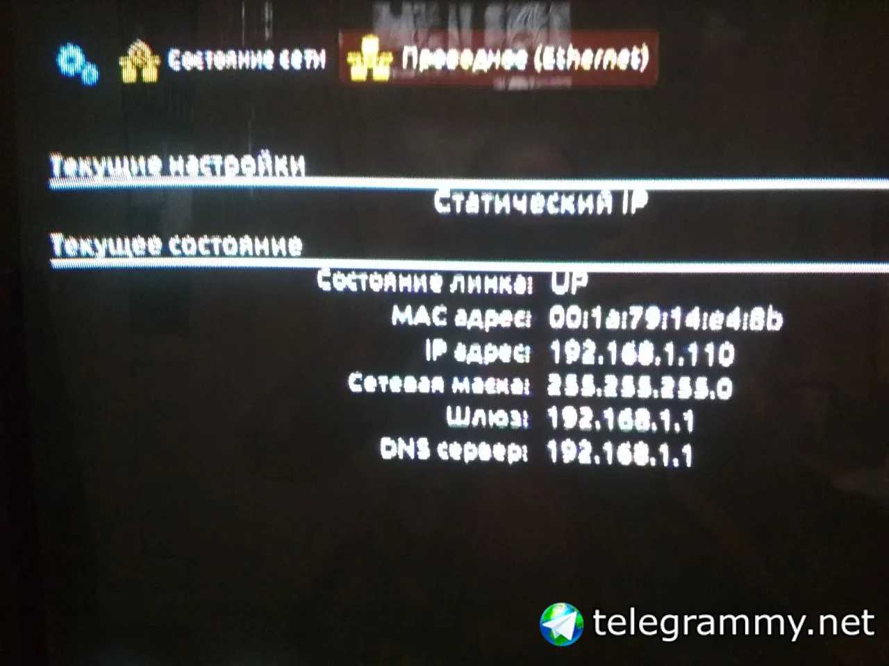 а какие настройки ethernet есть у приставки?