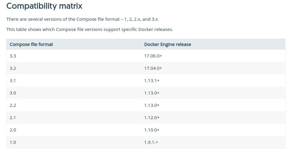 Я только понять не могу, почему версия 3, например, не поддерживается у меня. Клиент и сервер версии 17.06.0-ce