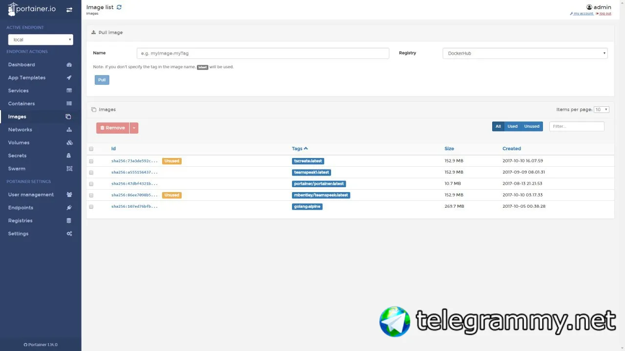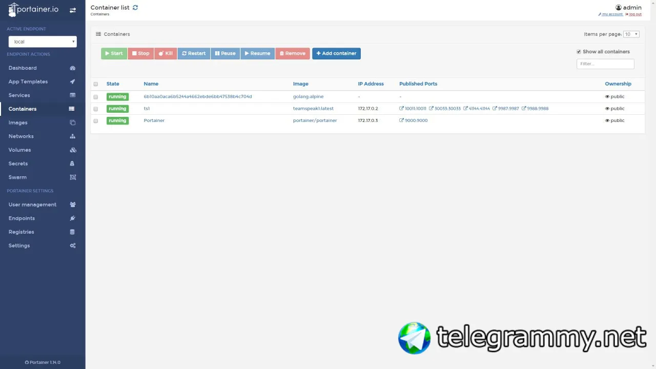 в portainer...
