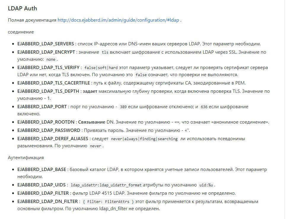 Поднимаю ejabberd чат, в настройках есть LDAP аутентификация. Эти параметры, небходимо передавать вместе с контейнером или внутри его редактировать ?