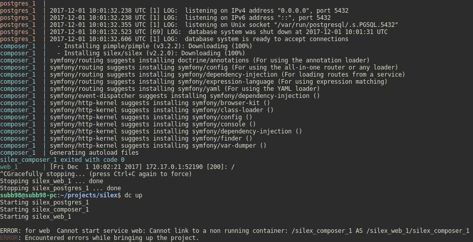 Если в контейнере присутствует папка vendor (после composer install), то приложение не заведётся.