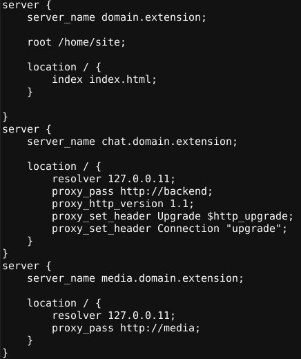 и когда поднимешь апстримы chat и media - можно не трогать nginx, станут доступны. лишь бы в одной сети были