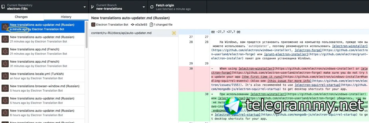 Можете заценить что из этого выходит https://github.com/electron/electron-i18n/blob/new-translations/content/ru-RU/docs/api/auto-updater.md