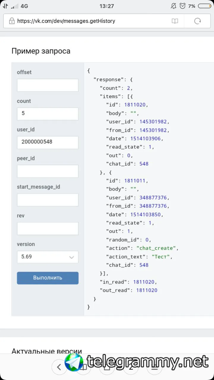 А messages.getById возвращает "Сообщение не поддерживается вашим приложением"