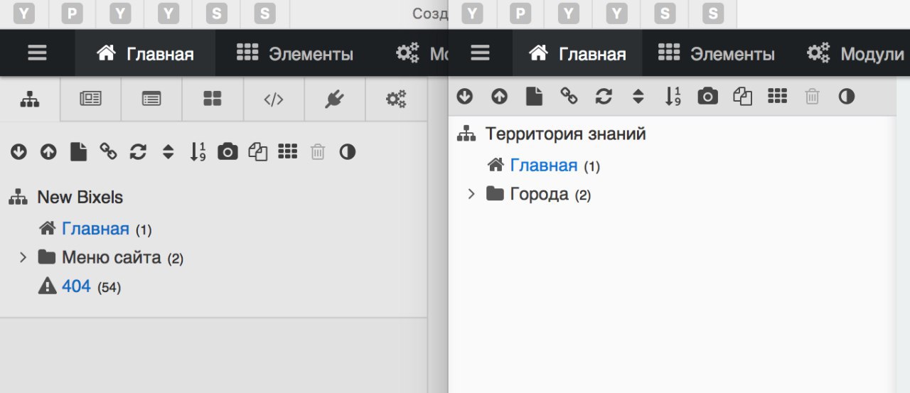 в одном есть кнопки чанки сниппеты и так далее, в другом нет, как так может быть?