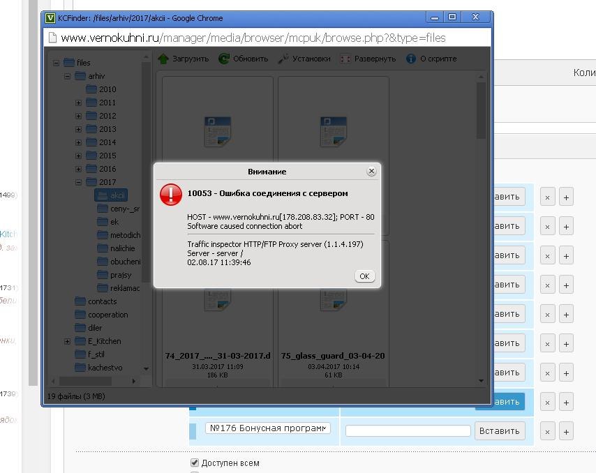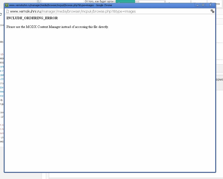 Салют всем! Никто не сталкивался с проблемой kcFinder «10053 ошибка с соединением сервера» или «Please use the MODX Content Manager instead of accessing this file directly.»?