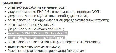 Знание и опыт вёрстки, это не означает, что это требуется постоянно