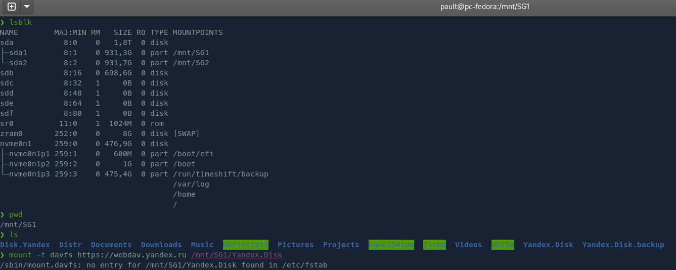 Подскажите, почему меня не выходит каменный цветок подключить этот Я.Диск как фс? зачем ему запись в fstab на этом этапе?