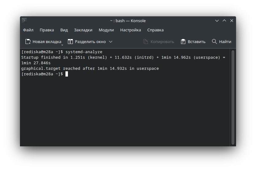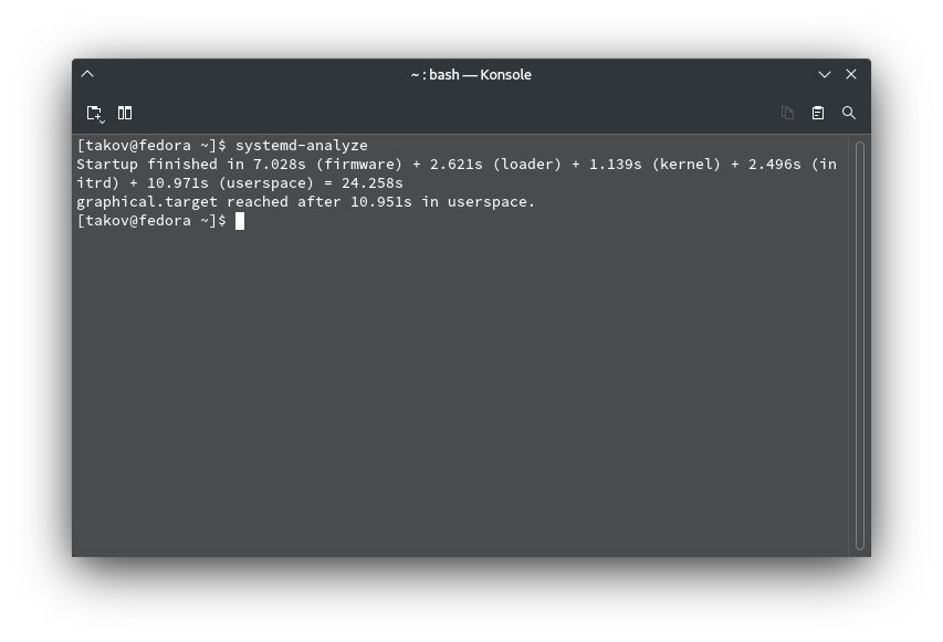 System-analize это такое.... в реальности немного по другому, на моём древнем компе арч грузится в реальном времени мин 1.5 , дефалтная федораа грузилась мин 3, щас после игрулек со службами практически сравнялись