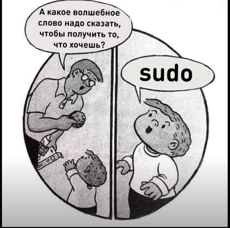 Не люблю я такие мемчики. Они создают ложное (и вредное) впечатление, что в любой ситуации, когда команда выдаёт ошибку, надо попробовать её запустить через sudo.