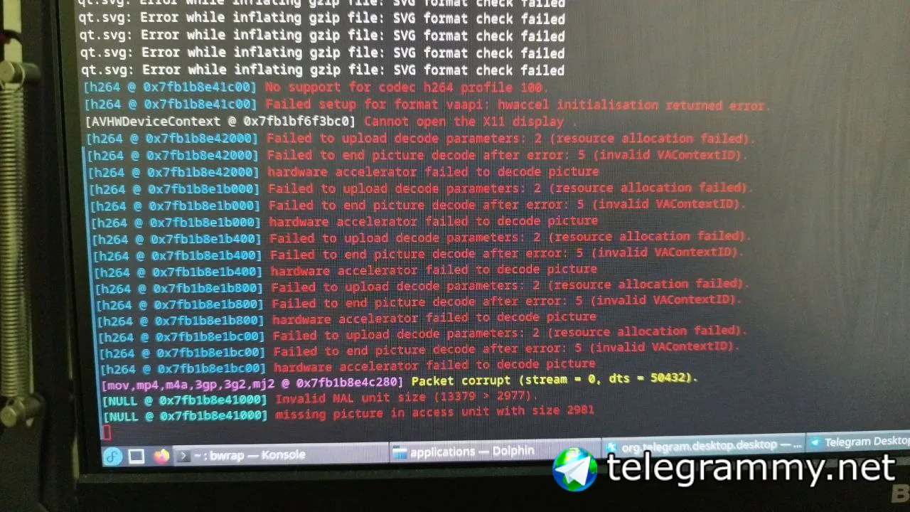 Не понял после какого момента, но если открыть видео в телеге в первый раз, оно не воспроизводится, а во второй система зависает намертво, помогает только SysRq