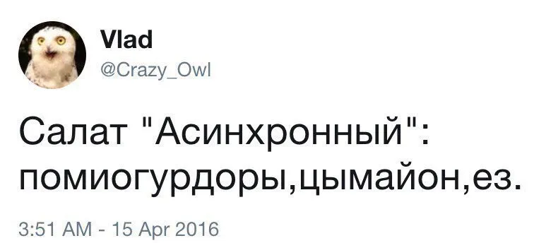 Как не асинхронность? Сначала на вход поступает салат, а на выход результат обработки салата пойдет не сразу
