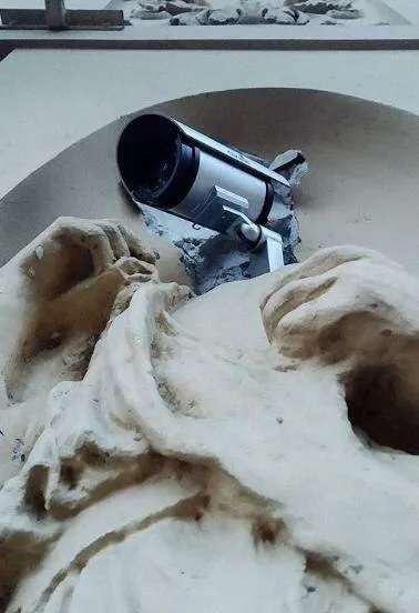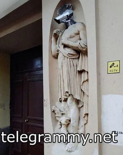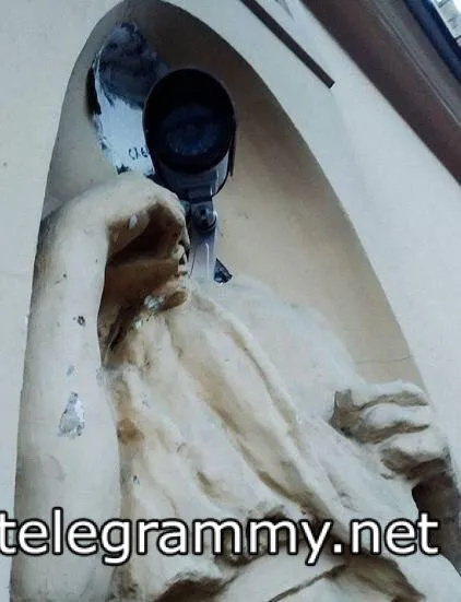 В Санкт-Петербурге на месте головы у скульптуры на историческом Доме Кирилловых появилась камера наблюдения. Футуристичненько.